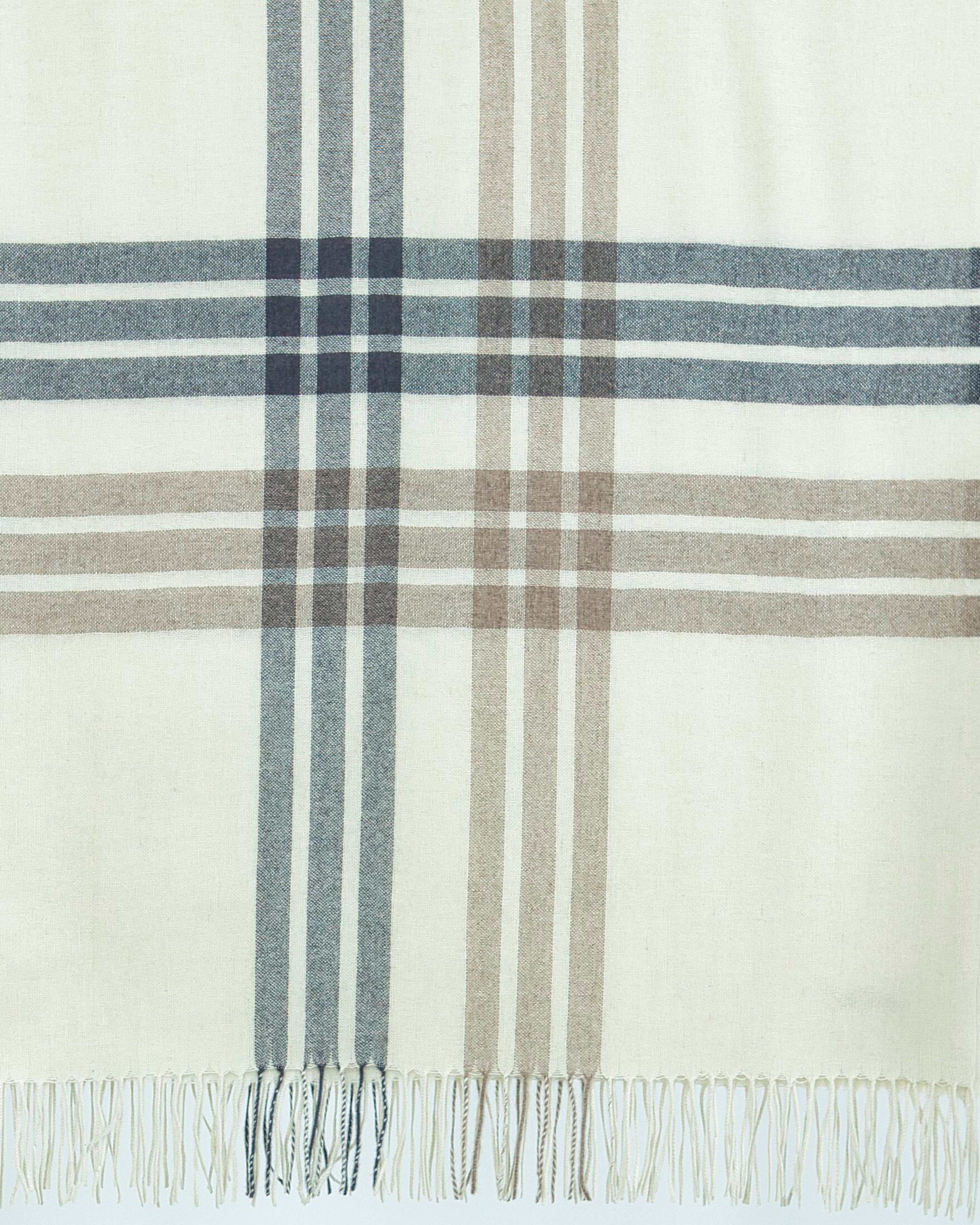 The Natural White Plaid Wrap Shawl offers understated elegance through its fine cashmere weave and tasteful brown and grey patterning. Crafted from the highest quality Mongolian cashmere, this lightweight wrap provides exceptional warmth whilst maintaining a refined drape that adapts beautifully to various styling options—from a generous wrap to a cosy layered shawl.
